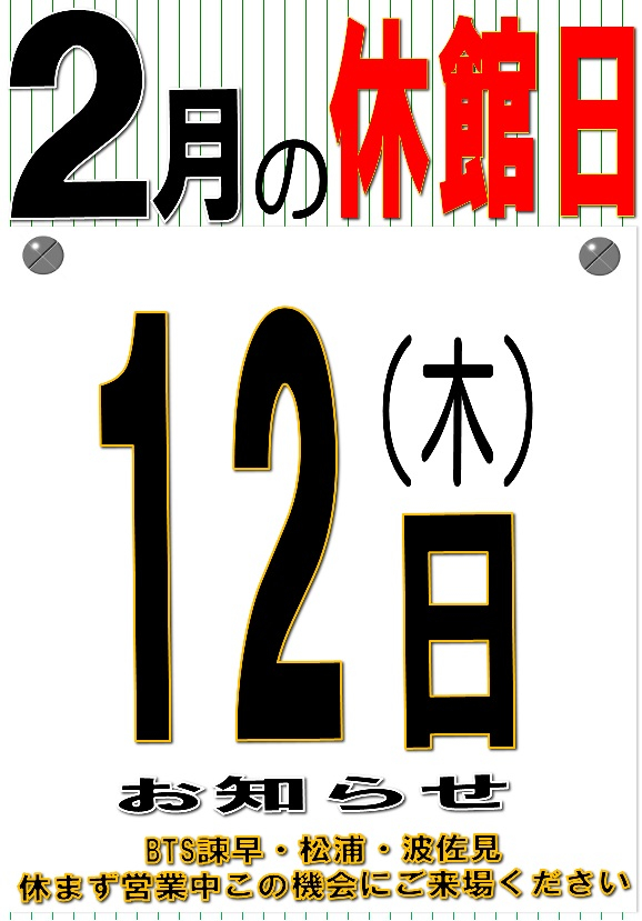 2月休館日のおしらせ