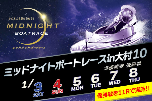 ミッドナイトボートレースin大村10 新春感謝競走【1月3日(土)~8日(木)】◆主な出場予定選手◆ 石橋 道友(長崎) 榎 幸司(長崎) 赤坂 俊輔(長崎) 下條 雄太郎(長崎) 坪口 竜也(長崎) 村上 遼(長崎) 山口 裕二(長崎) 樋口 亮(長崎)お楽しみに!