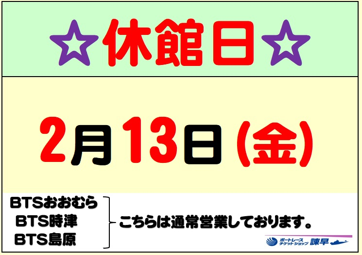 誠に勝手ながら、諌早は休館させて頂きます。