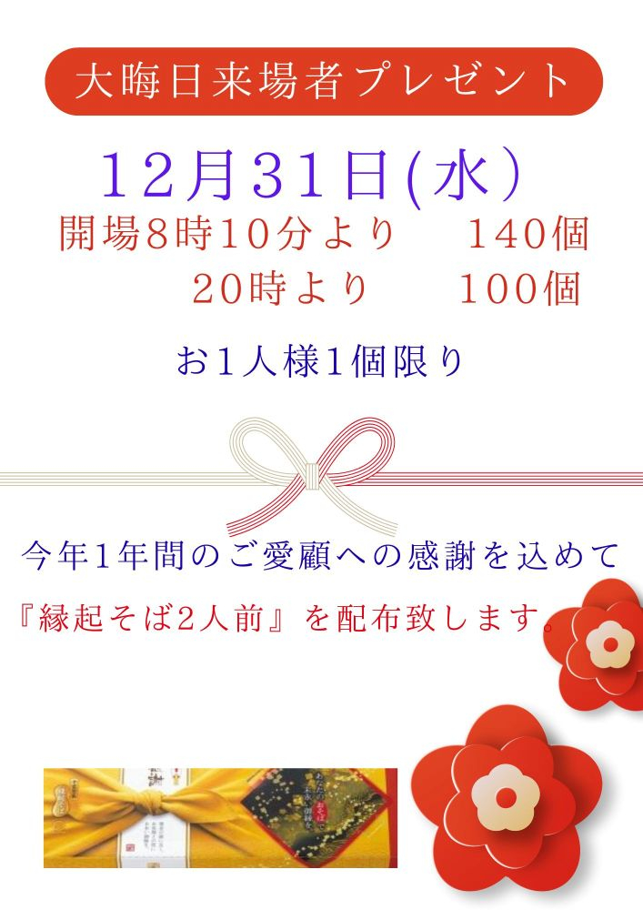 大晦日来場者プレゼント